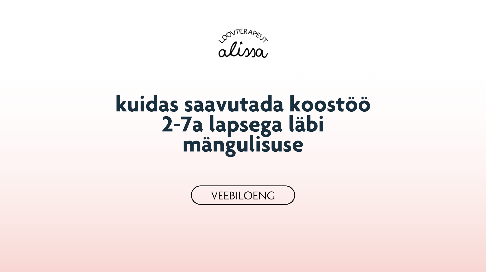 Loengut viin läbi mina – loovterapeut (MSc) Alissa Kiinvald. Olen 6a poja ema ja töötanud üle viie aasta laste ja peredega nii erapraksises, kui ka rehabilitatsiooni süsteemis, sh Tallinna Lastekodus.